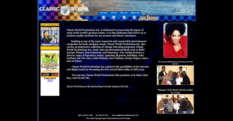 During my tenure at Classic World as Art Director and Webmaster, I re-branded their online presence and printed catalogs, and designed countless CD and DVD covers in Photoshop and Illustrator.
