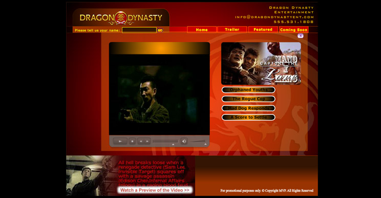Flash website for an downtown Chicago ad agency whose client was a world-renown classic martial arts DVD vendor in California.