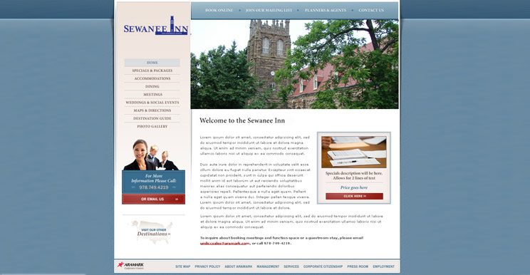 Working with Business Development Directors at Aramark, I was charged with creating the landing page for an Aramark-managed conference center in Tennessee.