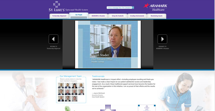 In my heyday at Aramark, I developed this Flash website to augment an RFP response for this large hospital system in Texas. The website ultimately was the deciding factor in the client's decision to reward us the contract..